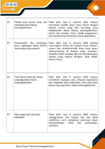 E4 Teknik dasar proses kerja dan Pada akhir fase E, peserta didik mampu