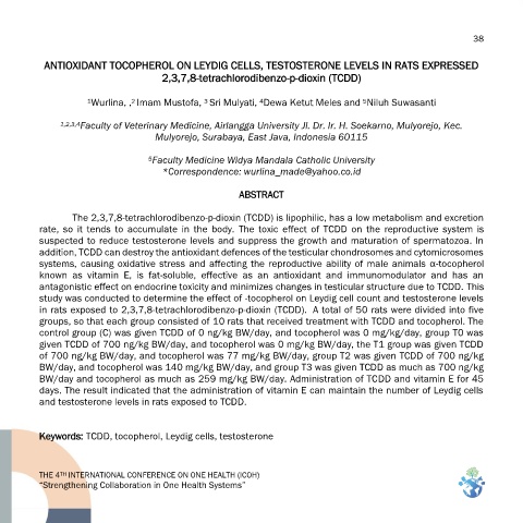 Keywords: TCDD, tocopherol, Leydig cells, testosterone
