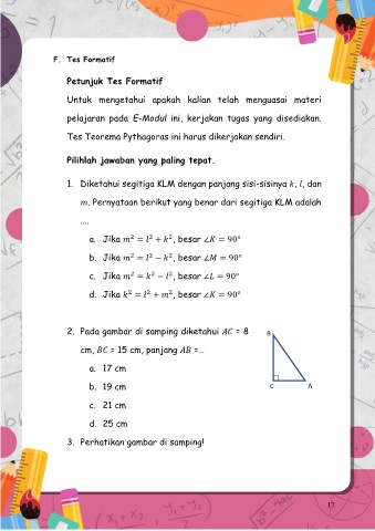 Tes Teorema Pythagoras ini harus dikerjakan sendiri.