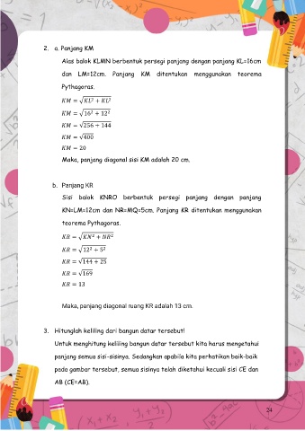 KN=LM=12cm dan NR=MQ=5cm. Panjang KR ditentukan menggunakan