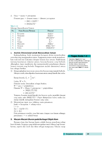c. Analisis Dimensional untuk Mencocokkan Satuan