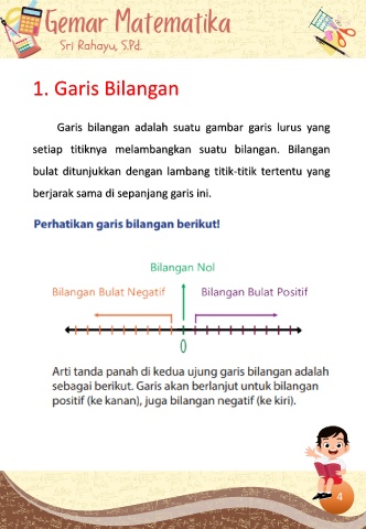 1. Garis Bilangan Garis bilangan adalah suatu gambar garis lurus yang setiap titiknya melambangkan suatu bilangan. Bilangan bulat ditunjukkan dengan lambang titik-titik tertentu yang berjarak sama di sepanjang garis ini. 4