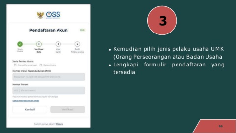 3 Kemudian pilih jenis pelaku usaha UMK (Orang Perseorangan atau Badan Usaha Lengkapi form ulir pendaftaran yang tersedia 06