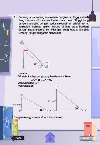 dengan sudut elevensi 60˚. Hitunglah tinggi burung tersebut