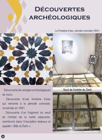 • Découverte de vestiges archéologiques Seuil de l’entrée du Derb