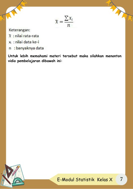 Untuk lebih memahami materi tersebut maka silahkan menonton vidio pembelajaran dibawah ini: E-Modul Statistik Kelas X 7