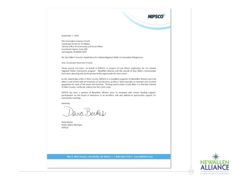Please accept this letter, on behalf of NIPSCO, in support of East Allen’s application for the Indiana