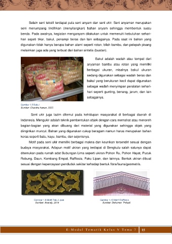 Selain seni tekstil terdapat pula seni anyam dan seni ukir. Seni anyaman merupakan