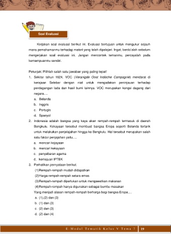 mengerjakan soal evaluasi ini. Jangan mencontek temanmu, percayalah pada