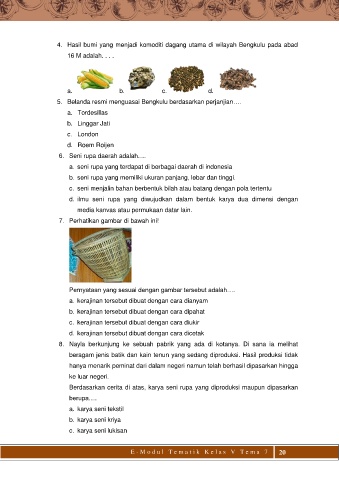 4. Hasil bumi yang menjadi komoditi dagang utama di wilayah Bengkulu pada abad