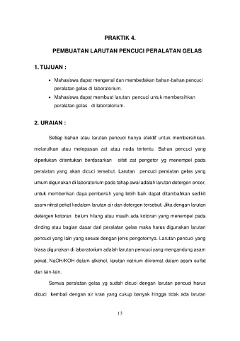 peralatan yang akan dicuci tersebut. Larutan pencuci peralatan gelas yang