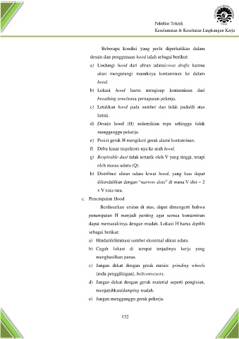 d) Desain hood (H) sedemikian rupa sehingga tidak