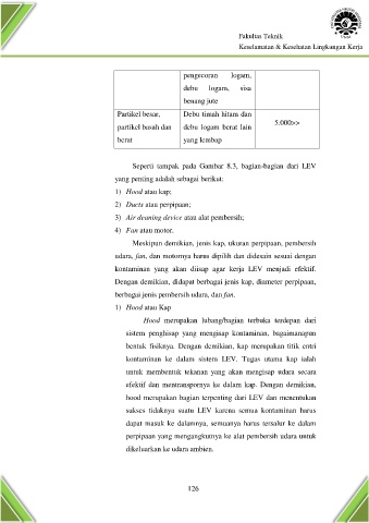 kontaminan yang akan diisap agar kerja LEV menjadi efektif.