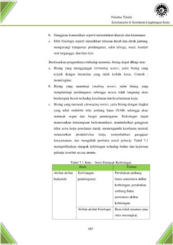 Tabel 7.1 Jenis – Jenis Dampak Kebisingan