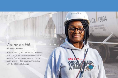 Change and Risk Management Adjusts thinking and behavior to resiliently face change and uses experience to fuel growth . Enables the process of change and transition while helping others deal with the effects of change . 17