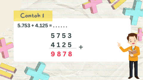 Contoh 1 5.753 + 4.125 = . . . . . . 5 7 5 3 4 1 2 5 + 9 8 7 8