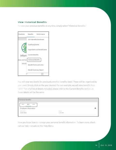 To view your previous benefits at any time, simply select "Historical Benefits."