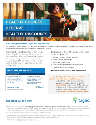 You value your health enough to make smart choices and the Cigna Healthy Rewards * program can help with discounts