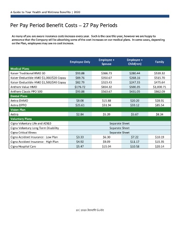 Per Pay Period Benefit Costs – 27 Pay Periods