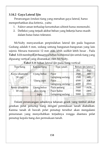 Tabel 3.11 beban lateral ijin pada tiang vertical