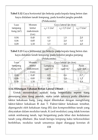 Tabel 3.13 Gaya horizontal ijin bekerja pada kepala tiang beton dan