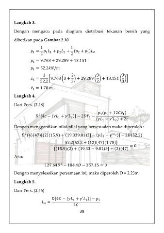 Dengan menyelesaikan persamaan ini, maka diperoleh D = 2.23m.