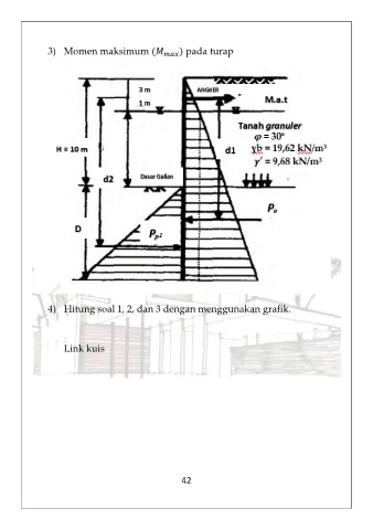 3) Momen maksimum ( ) pada turap 4) Hitung soal 1, 2, dan 3 dengan menggunakan grafik. Link kuis 42
