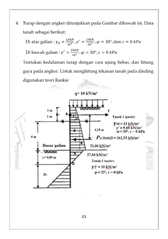 4. Turap dengan angker ditunjukkan pada Gambar dibawah ini. Data