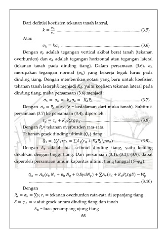 (tekanan tanah pada dinding tiang). Dalam persamaan (3.6),