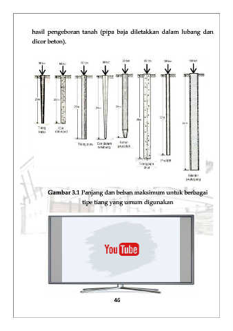 hasil pengeboran tanah (pipa baja diletakkan dalam lubang dan dicor beton). Gambar 3.1 Panjang dan beban maksimum untuk berbagai tipe tiang yang umum digunakan 46