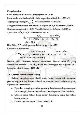 Berat pemukul = 30 kN, tinggi jatuh ℎ= 1,5 m.