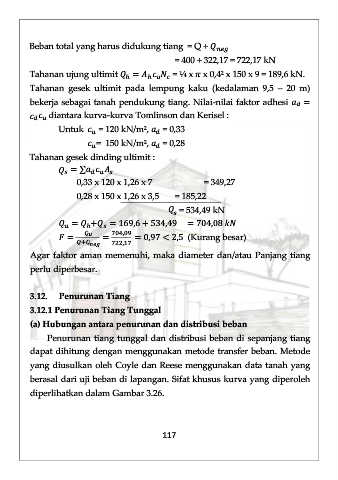 Agar faktor aman memenuhi, maka diameter dan/atau Panjang tiang