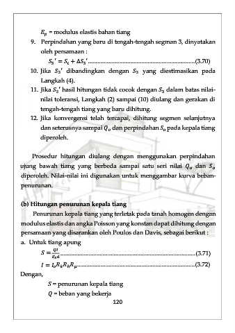 dan seterusnya sampai dan perpindahan pada kepala tiang