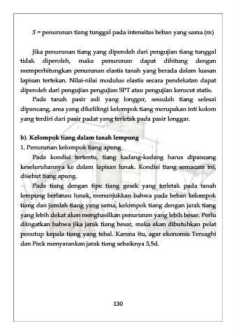 penutup kepala tiang yang tebal. Karena itu, agar ekonomis Terzaghi