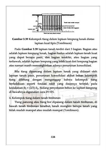 Gambar 3.39 Kelompok tiang dalam lapisan lempung lunak diatas