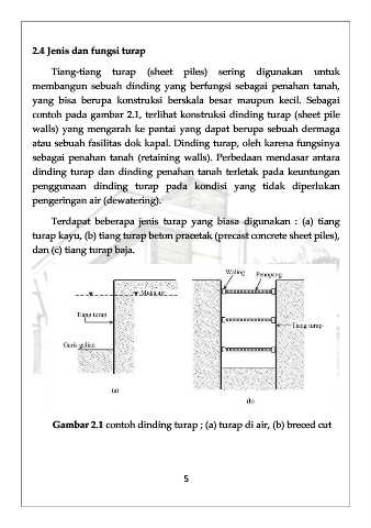 contoh pada gambar 2.1, terlihat konstruksi dinding turap (sheet pile