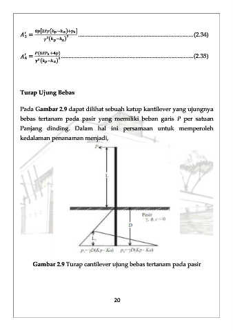 bebas tertanam pada pasir yang memiliki beban garis P per satuan