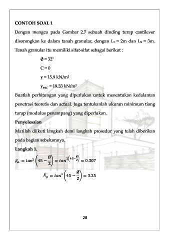 Dengan mengcu pada Gambar 2.7 sebuah dinding turap cantilever