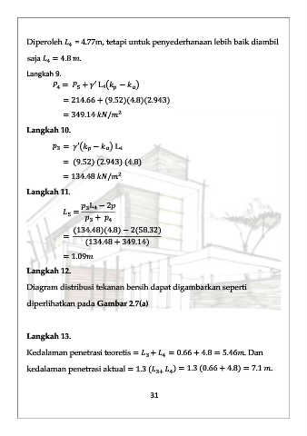 Diperoleh = 4.77m, tetapi untuk penyederhanaan lebih baik diambil
