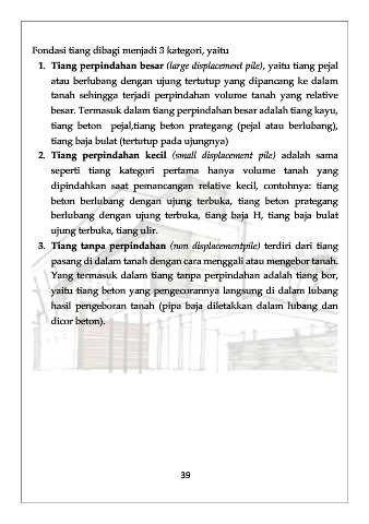 Fondasi tiang dibagi menjadi 3 kategori, yaitu