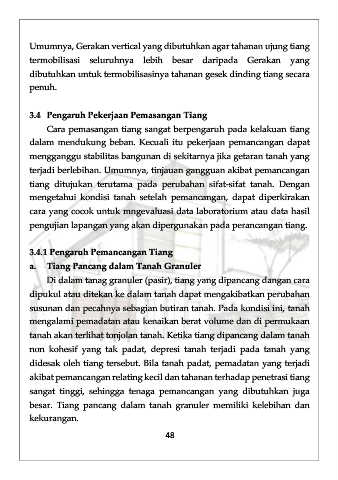 besar. Tiang pancang dalam tanah granuler memiliki kelebihan dan
