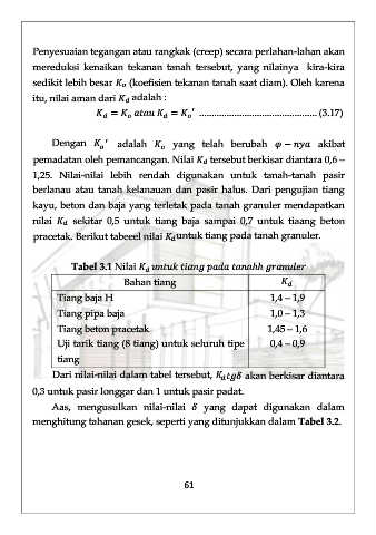 sedikit lebih besar (koefisien tekanan tanah saat diam). Oleh karena