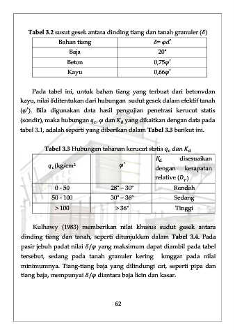 Tabel 3.2 susut gesek antara dinding tiang dan tanah granuler ( )