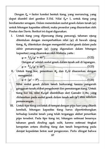 dapat diambil dari gambar 3.15d. Nilai = 1, untuk tiang yang