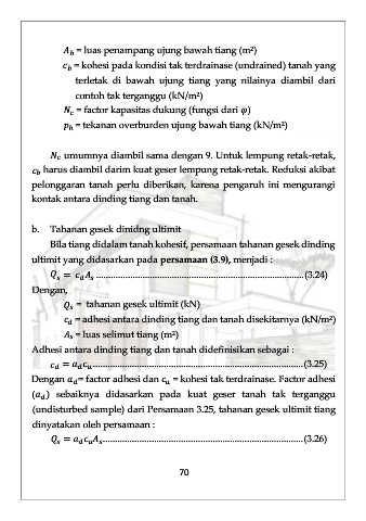 (undisturbed sample) dari Persamaan 3.25, tahanan gesek ultimit tiang