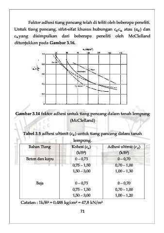 Tabel 3.5 adhesi ultimit ( ) untuk tiang pancang dalam tanah