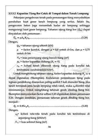 3.5.3.2 Kapasitas Tiang Bor Cetak di Tempat dalam Tanah Lempung