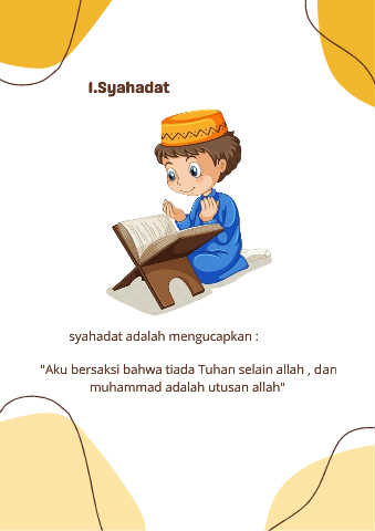 1.Syahadat syahadat adalah mengucapkan : "Aku bersaksi bahwa tiada Tuhan selain allah , dan muhammad adalah utusan allah"