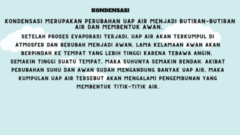 KONDENSASI MERUPAKAN PERUBAHAN UAP AIR MENJADI BUTIRAN-BUTIRAN