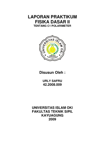LAPORAN PRAKTIKUM FISIKA DASAR II TENTANG C1 POLARIMETER Disusun Oleh : URLY SAFRU 42.2008.009 UNIVERSITAS ISLAM OKI FAKULTAS TEKNIK SIPIL KAYUAGUNG 2009